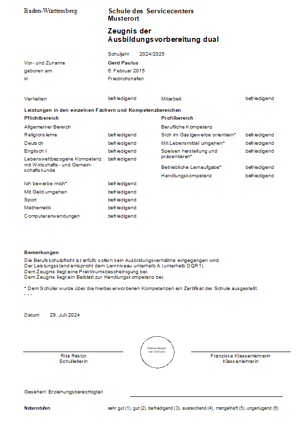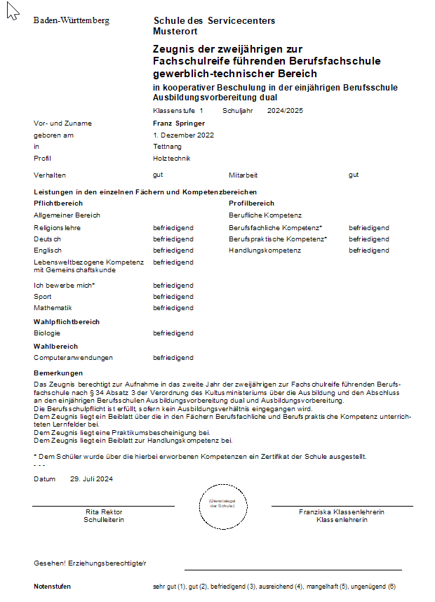>In AV und AV Dual gibt es für Schüler, die im Niveau 2BF unterrichtet werden, kein Halbjahreszeugnis, sondern eine Halbjahresinformation.